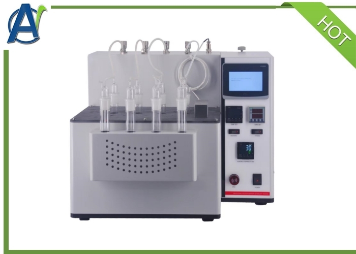 This instrument is suitable to determine oxidation stability of unused hydrocarbon based insulating liquids under accelerated conditions. The insulating liquid sample is maintained at 120℃ in the presence of a solid copper catalyst whilst bubbling a constant flow of air. The degree of oxidation stability is estimated by measurement of volatile acidity, soluble acidity and sludge.